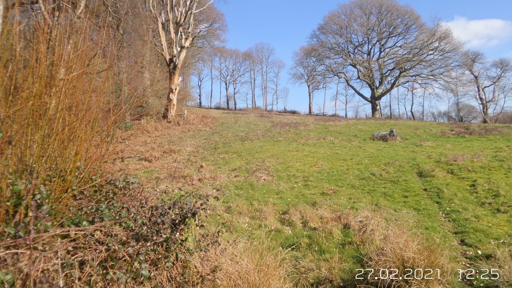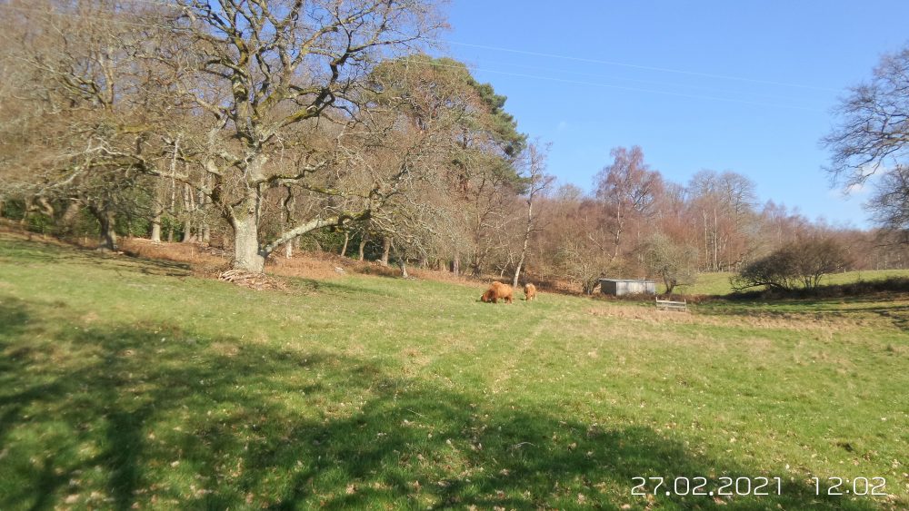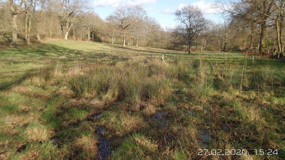 The second photo (lower roadside) shows where we have given a little kick start to increasing biodiversity by planting a small area of Sallow (common willow) in one of our wetter spots, we will see what happens! The area is fenced off for the time being to keep the cattle from browsing it to death in the early stages. This is an example of the types of interventions we will be making to increase and maintain biodiversity over time.